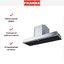 Вытяжка работает в режимах отвода и циркуляции, поэтому загрязнения удаляются из комнаты и перенаправляются в воздуховод, при этом можно очистить воздух и использовать повторно за счет возвращения его в помещение. Количество скоростей в этой модели: 3 шт. Уровень шума при полной загруженности — 70 дБ.