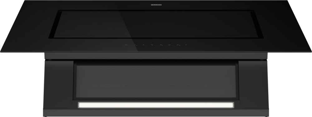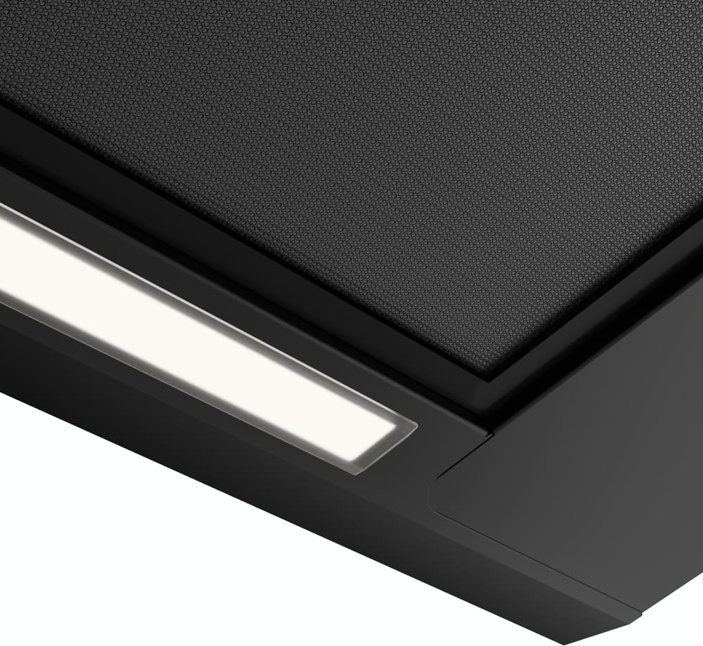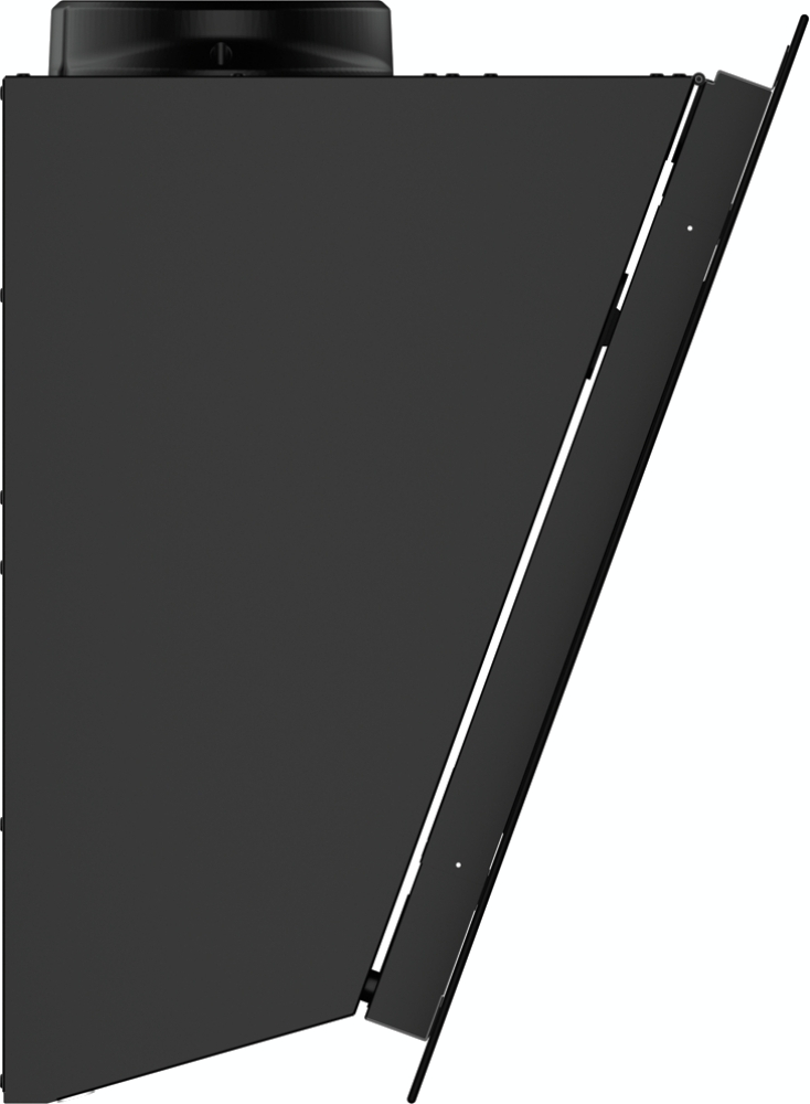 Воздух всасывается по периметру вытяжки через узкие щели. Он собирается в потоки, которые направляются прямо к фильтрам внутри, не рассеивается на кухне. Благодаря этой технологией вытяжку можно сделать компактнее и энергоэффективнее.