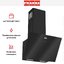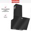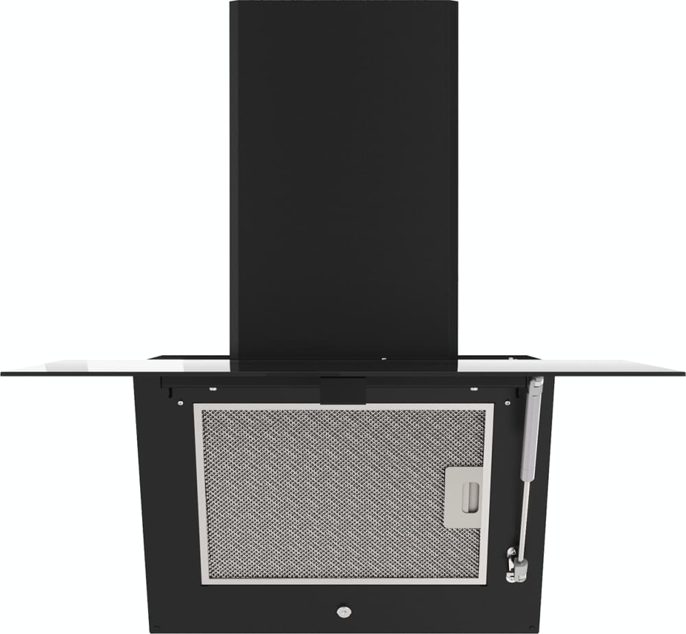Материалы корпуса — нержавеющая сталь и стекло: несущие элементы выполнены из нержавеющей стали, а экран — из стеклянной панели, объединённых в единый корпус черного цвета. Такое сочетание даёт жесткость конструкции благодаря стальному каркасу и гладкую лицевую поверхность за счёт стекла. Жироулавливающий фильтр металлический — он физически задерживает масляные частицы и рассчитан на многократную очистку, включая мойку в посудомойке. В визуальном и тактильном плане сочетание стали и стекла формирует цельный фасад, где стеклянный экран играет роль декоративного и функционального элемента.