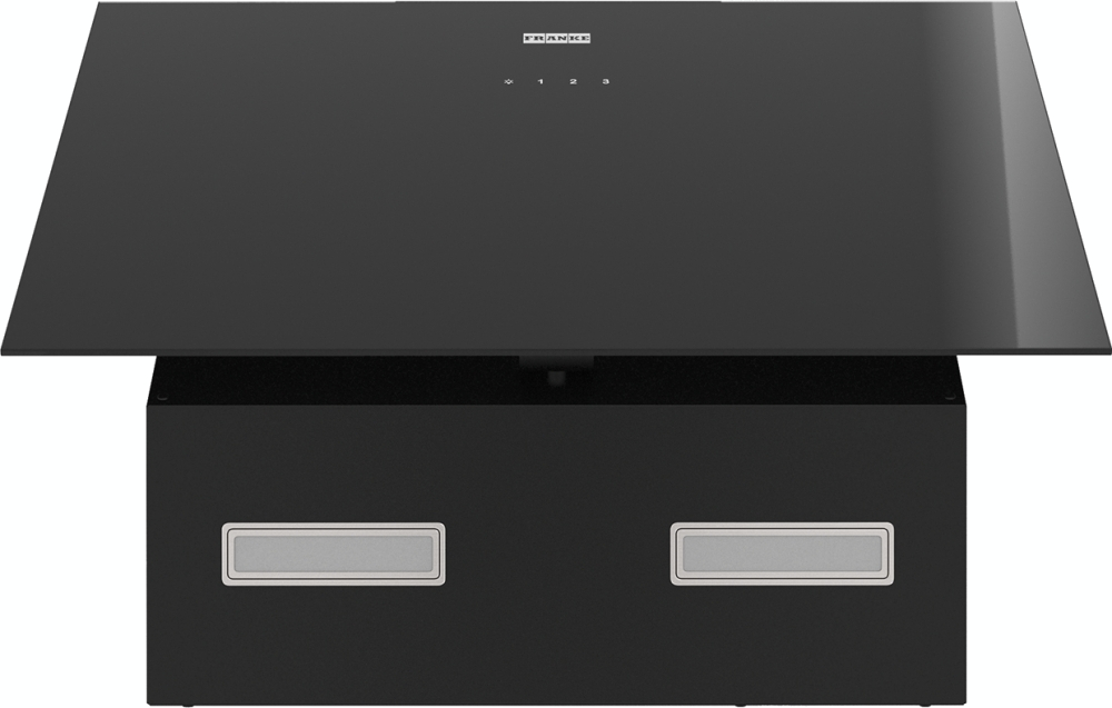 Воздух всасывается по периметру вытяжки через узкие щели. Он собирается в потоки, которые направляются прямо к фильтрам внутри, не рассеивается на кухне. Благодаря этой технологией вытяжку можно сделать компактнее и энергоэффективнее.
