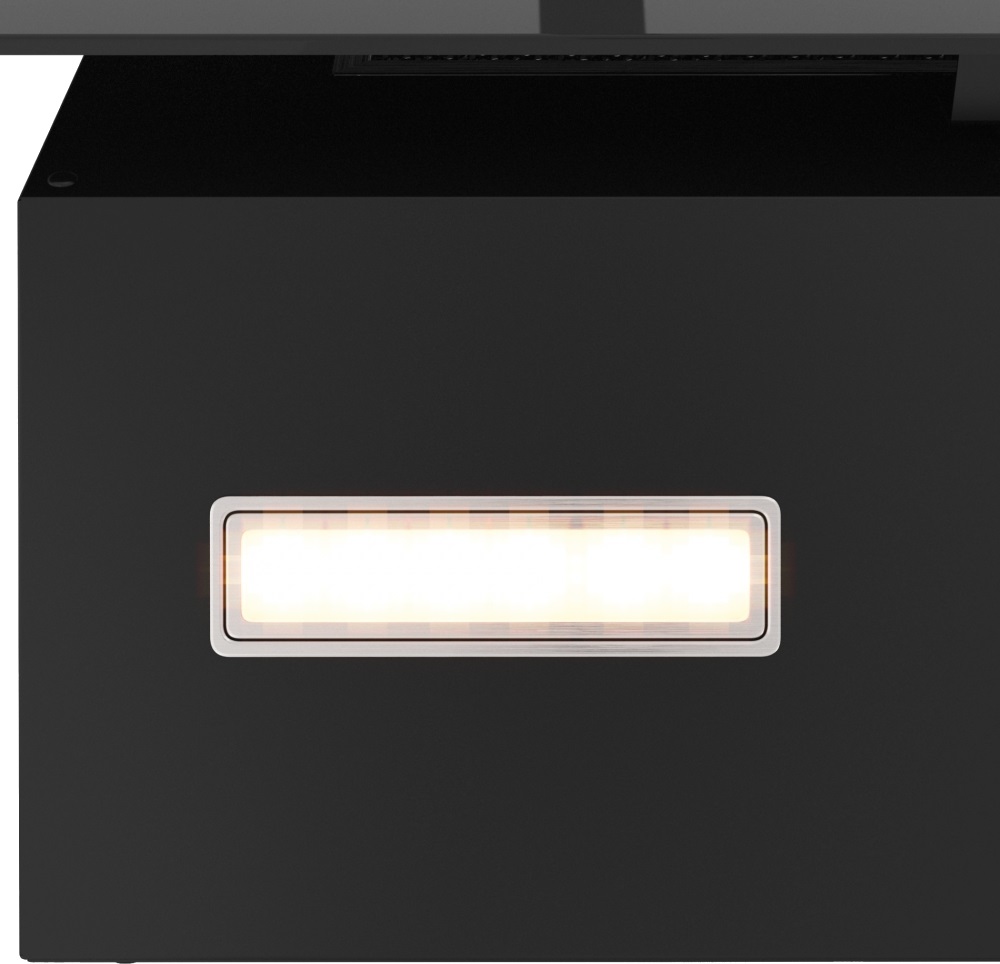 Освещение рабочей зоны выполнено светодиодной подсветкой: две лампы по 1.5 Вт дают направленный свет на плиту. Фронтальные сенсорные клавиши реагируют на касание и позволяют быстро переключать скорости; есть индикаторы текущего режима. Для работы в режиме рециркуляции можно установить угольный фильтр (приобретается отдельно), а металлический жироулавливающий фильтр один и пригоден для мытья в посудомоечной машине.