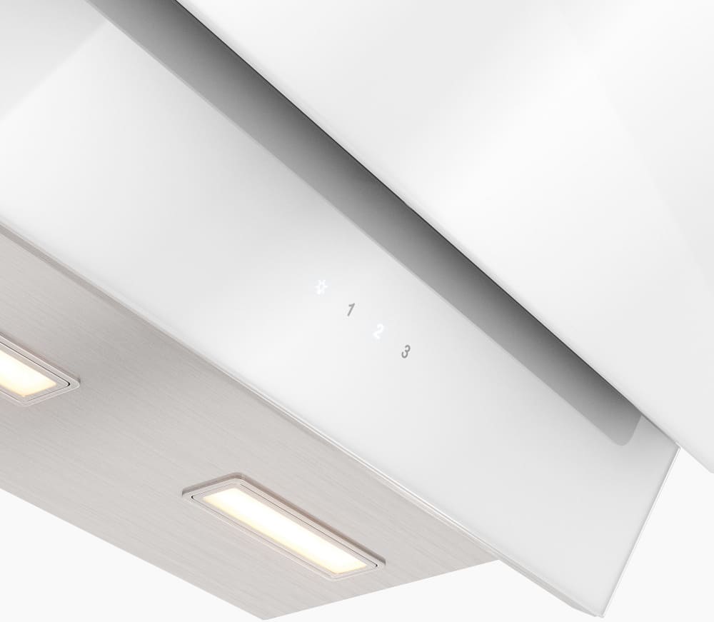 Встраиваемые и простые настенные модели, как правило, оснащаются боковой панелью управления, состоящей из нескольких кнопок. Их количество зависит от числа скоростей, наличия интенсивного режима и встроенного освещения. Боковое расположение панели управления делает вытяжку еще более незаметной.