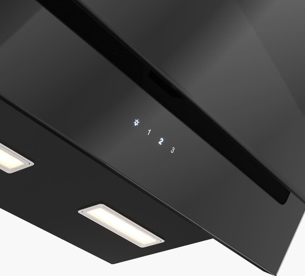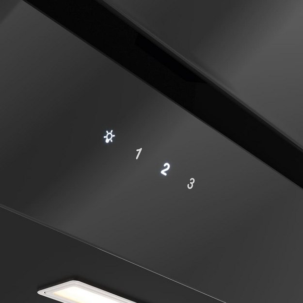 Сенсорная электронная панель управления оснащается цифровым дисплеем, на котором высвечивается основная информация о текущем состоянии устройства. Для выбора скорости всасывания в таких вытяжках будет достаточно одной кнопки: ее последовательное нажатие позволяет изменять ступени мощности, а их значение появляется на дисплее.