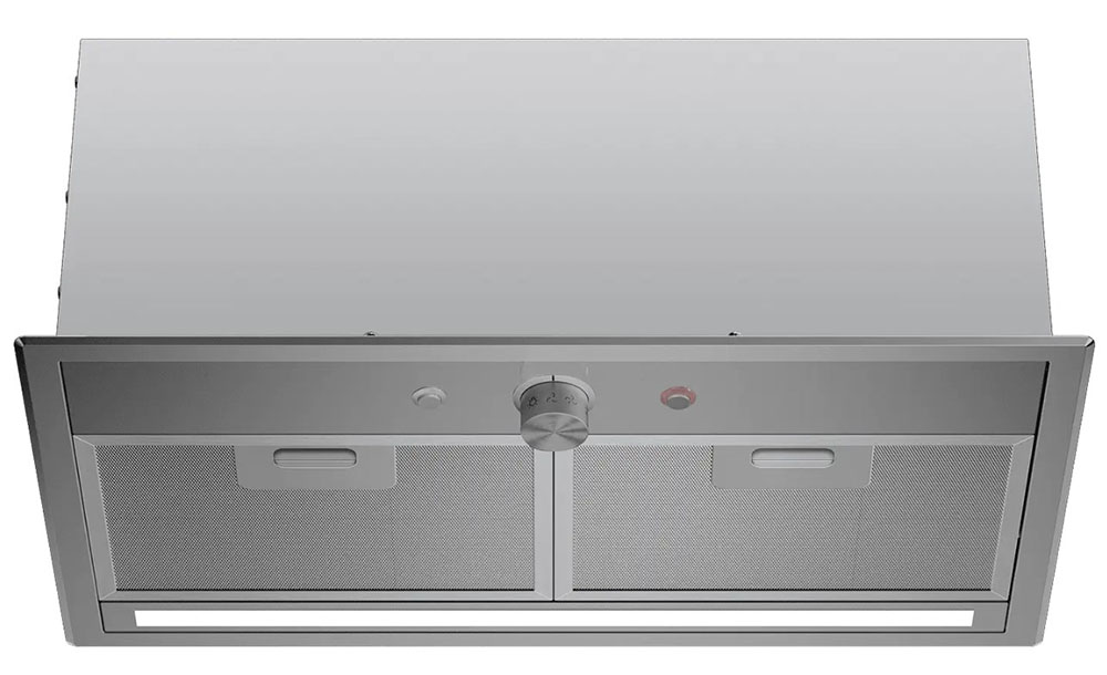 Вытяжка устанавливается в шкаф или в потолочную нишу — таким образом все соединительные элементы и корпус оказываются скрыты. Это подходящий вариант для небольшого помещения, если нужно максимально освободить пространство, а также необходимость, если вы продумываете кухонный дизайн до мелочей.