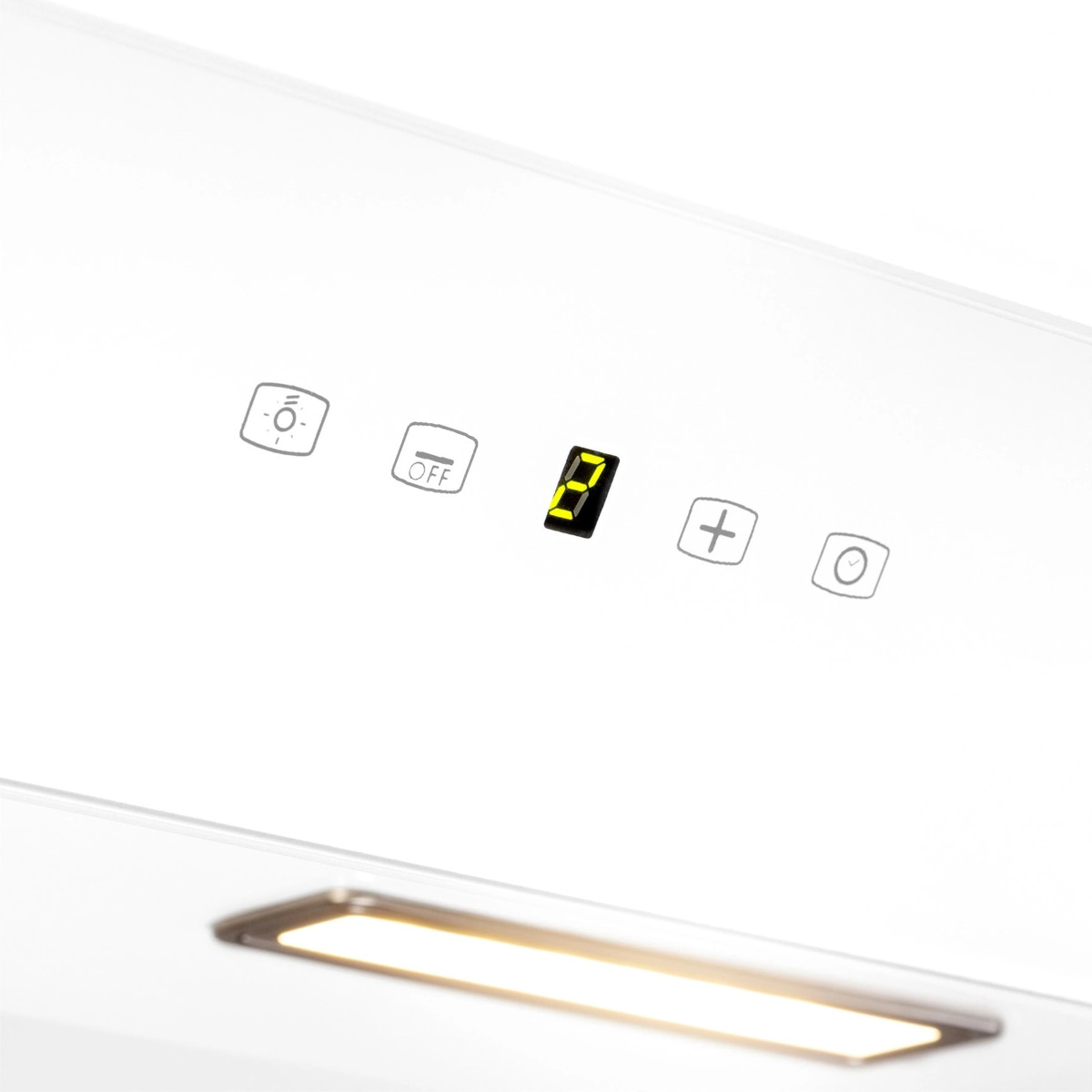 Сенсорная электронная панель управления оснащается цифровым дисплеем, на котором высвечивается основная информация о текущем состоянии устройства. Для выбора скорости всасывания в таких вытяжках будет достаточно одной кнопки: ее последовательное нажатие позволяет изменять ступени мощности, а их значение появляется на дисплее.