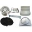 К фурнитуре относятся элементы, находящиеся на панели управления, многочисленные ручки для выдвижения или изменения высоты расположения вытяжек, декоративные решетки и трубы. Иногда специалисты относят к фурнитуре и сменные жироулавливающие фильтры для грубой очистки воздуха, угольные фильтры тонкой очистки для удаления неприятных запахов, заслонки для предупреждения обратной тяги, короба и гофрированные трубы для воздуховодов.