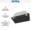 Устройство шириной 52 см может быть установлено в подвесном шкафу над варочной панелью с тремя или четырьмя конфорками. Черная фронтальная часть из стекла и окрашенной нержавеющей стали удобна в очистке и отлично подойдет для интерьеров в современном стиле. Производительность всасывания на первой ступени составляет 250 м3/ч, а на максимальной — 450 м3/ч: вытяжку можно размещать в кухне небольшой площади. Для эффективной работы в режиме рециркуляции понадобится приобрести угольный фильтр, задерживающий посторонние запахи. Модель отличается низким уровнем шума — даже при работе на максимальной мощности он составляет всего 50 дБ. На устройство выдается официальная гарантия производителя сроком на 24 месяца.