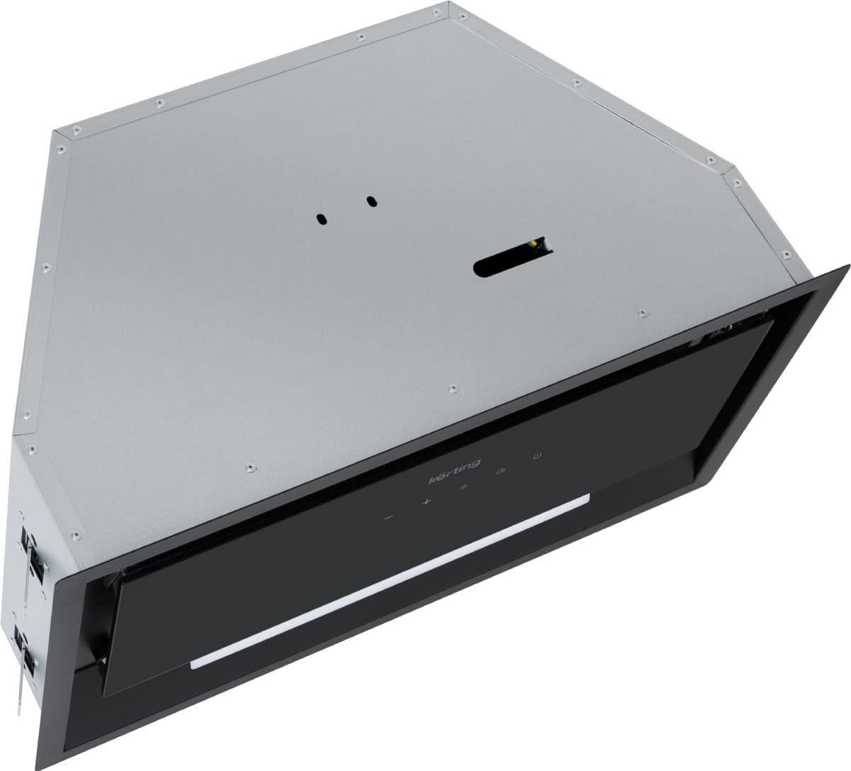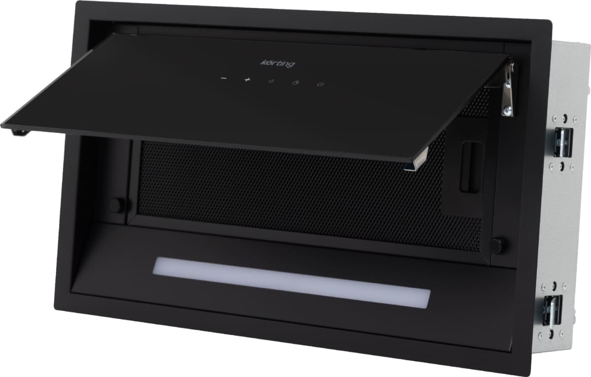 Встраиваемая вытяжка — выбор тех, кто хочет максимально задекорировать технику, или владельцев маленькой кухни. Тип встраивания: в шкаф. Обратите внимание на цветовые сочетания модели Korting KHI 6892 DGN, чтобы органично вписать ее в свою квартиру. Оттенок корпуса: черное стекло. Благодаря лампочкам, которые расположены на нем, можно освещать плиту и столешницу рядом, чтобы готовить было еще проще и приятнее.
