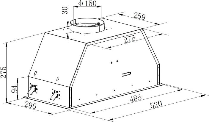 У многих встраиваемых моделей глубина может регулироваться, а рабочая всасывающая поверхность — увеличиваться благодаря выдвижному козырьку, но габариты корпуса такой вытяжки должны соответствовать размерам подвесного шкафа. Выбирать основные размеры вытяжки с соблюдением всех требований эффективности и безопасности работы следует также не в ущерб общему дизайну помещения.