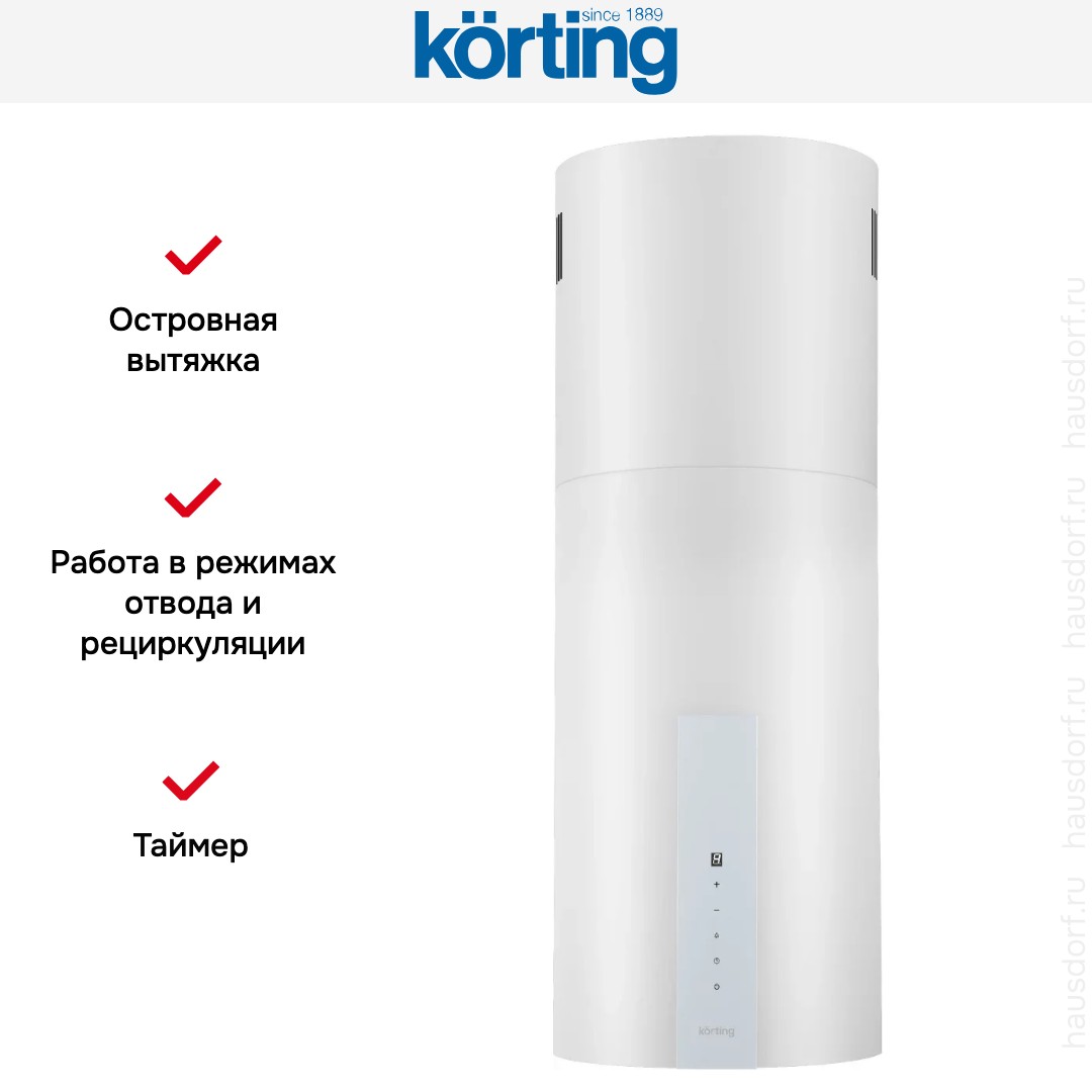 Островная вытяжка Korting KHA 35808 DN Cylinder — стильное и практичное решение для современной кухни с островной плитой. Ее цилиндрический корпус выполнен из прочного металла и покрыт элегантным белым лаком. Компактная ширина 35,15 см делает прибор универсальным для кухонь разного размера, а высота от 99 до 117 см обеспечивает удобную установку над плитой. За счет продуманной формы она не загромождает пространство и хорошо смотрится в светлых и минималистичных интерьерах. Металлическая поверхность легко очищается, а ровный белый тон гармонирует с большинством кухонных гарнитуров.