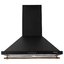 Самыми популярными остаются черные вытяжки. Черный цвет отлично сочетается с любыми другими, на нем не так заметны загрязнения. Кроме того, черные тона можно вписать в кухню любого стиля, от хай-тек до классического. В черном цвете изготавливают все типы вытяжек — купольные, наклонные, настенные, подвесные, островные, Т-образные. Особенно интересны и разнообразны модели из закаленного стекла, которое удачно гармонирует со стеклокерамическими варочными панелями.