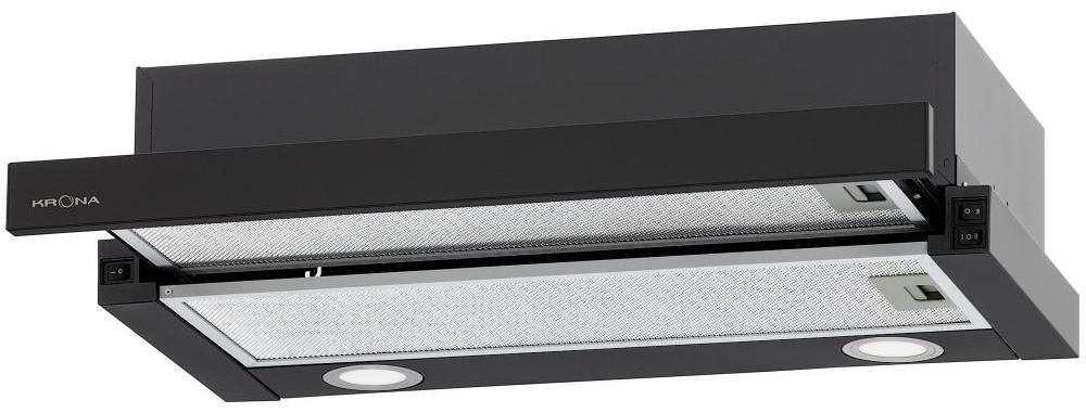 Встраиваемая вытяжка — выбор тех, кто хочет максимально задекорировать технику, или владельцев маленькой кухни. Тип встраивания: в шкаф. Обратите внимание на цветовые сочетания модели KRONA KAMILLA MV 6002 BLACK, чтобы органично вписать ее в свою квартиру. Оттенок корпуса: черный. Благодаря лампочкам, которые расположены на нем, можно освещать плиту и столешницу рядом, чтобы готовить было еще проще и приятнее. Фишка этой техники — выдвижная панель.