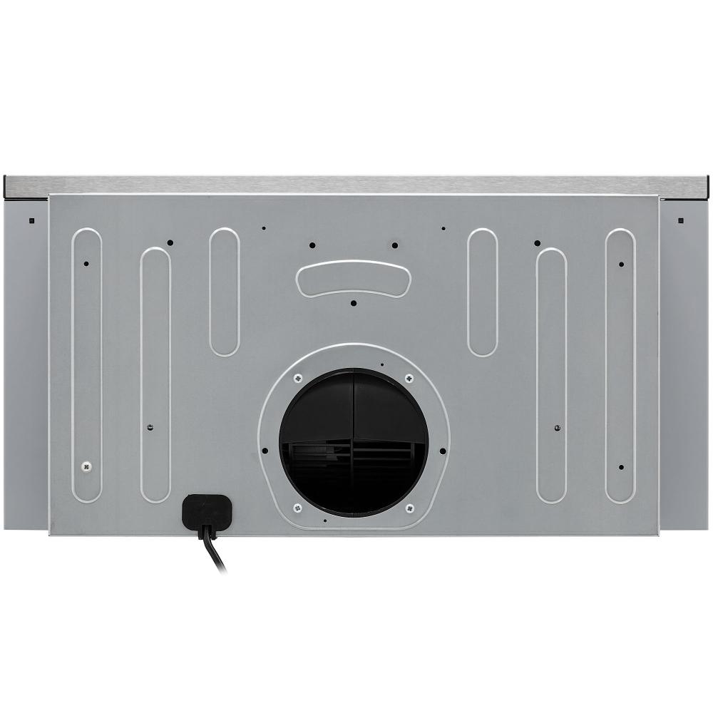 Вытяжка работает в режимах отвода и циркуляции, поэтому загрязнения удаляются из комнаты и перенаправляются в воздуховод, при этом можно очистить воздух и использовать повторно за счет возвращения его в помещение. Количество скоростей в этой модели: 3 шт. При этом максимальная производительность составляет 510 куб.м./ч. Уровень шума при полной загруженности — 48 дБ.