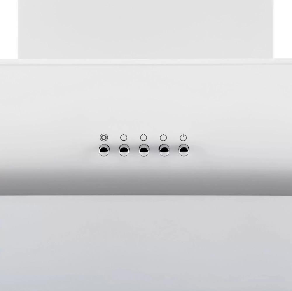 Наиболее распространенным элементом управления являются кнопки — ими оснащаются устройства с механическим управлением. Кнопки можно увидеть у вытяжек всех типов, от простых встраиваемых до дизайнерских подвесных, островных или наклонных. Количество кнопок зависит от набора функций: в простейшем случае достаточно всего трех кнопок — двух для переключения скоростей и одной для включения освещения. Как правило, они имеют круглую форму, однако производители предлагают устройства с квадратными и даже треугольными кнопками. В больших купольных вытяжках кнопки могут изготавливаться из меди, бронзы или латуни, а моделях современного дизайна — оснащаться подсветкой.