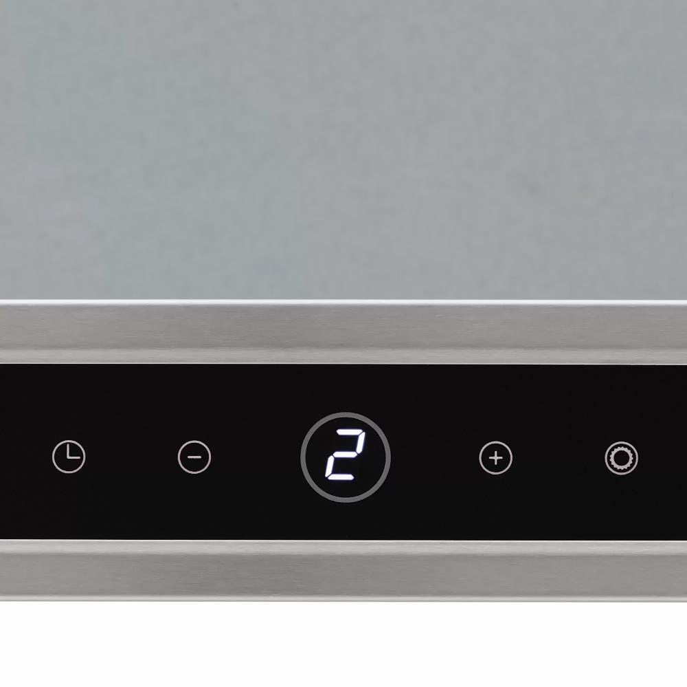 Гораздо большими возможностями располагают вытяжки с сегментными дисплеями — на них высвечивается не только скорость, но и другие параметры. Так, с помощью многофункционального 7-сегментного дисплея в устройствах производства Faber, Neff, Bora и многих других можно задавать один из 5 уровней мощности, интенсивный и автоматический режим, узнавать оставшееся время работы таймера прямого или обратного отсчета, получить сообщение об ошибке и ее код. Вытяжки, встраиваемые в варочную поверхность, имеют объединенную с ней панель управления: на ее дисплее отображаются также все данные о работе зон нагрева.