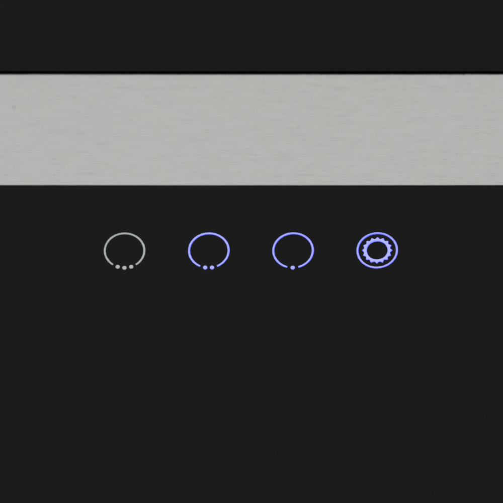 Сенсорная электронная панель управления оснащается цифровым дисплеем, на котором высвечивается основная информация о текущем состоянии устройства. Для выбора скорости всасывания в таких вытяжках будет достаточно одной кнопки: ее последовательное нажатие позволяет изменять ступени мощности, а их значение появляется на дисплее.