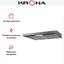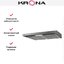 Вытяжка устанавливается под подвесной шкаф — отверстие для воздуховода находится на верхней крышке. Эту модель легко установить даже на маленькой кухне, рекомендованная площадь кухни — 7 кв. м. Цвет корпуса — серебристый металлик.