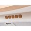 Часто кнопки или слайдеры находятся на фронтальной части устройства с правой стороны, чтобы их было удобнее переключать правой рукой и бывают скрыты выдвижным экраном. В больших купольных моделях кнопки специально выполняются так, чтобы бросаться в глаза: это заметная часть отделки устройства. Так, медные или латунные кнопки на светлом фасаде подчеркивают классический дизайн вытяжки и гармонируют с окантовкой из металла или натурального дерева. В таких моделях обычные кнопки или слайдеры могут заменяться более стильными поворотными переключателями.
