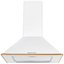 Еще один универсальный цвет — белый, он особенно хорошо подходит для небольших кухонь, так как зрительно способен расширить пространство. На белом фона меньше заметны капли воды и даже частицы жира. В классическом или античном белом выполняются купольные и каминные вытяжки, угловые и встраиваемые модели. Светлые кремовые тона, оттенок слоновой кости — наиболее распространенный вариант для больших вытяжек с окантовкой из натурального дерева.