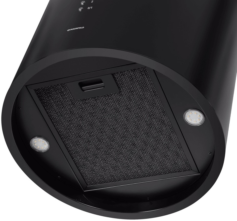 Вытяжка Maunfeld LEE WALL 39 LONG BLACK выполнена в выразительном черном цвете и сочетает строгую геометрию дизайна с практичностью. Ее корпус шириной всего 38.7 см вписывается в узкие ниши и визуально не перегружает кухню. Металл придает конструкции солидность и устойчивость к нагреву, а матовая поверхность минимизирует видимость отпечатков.