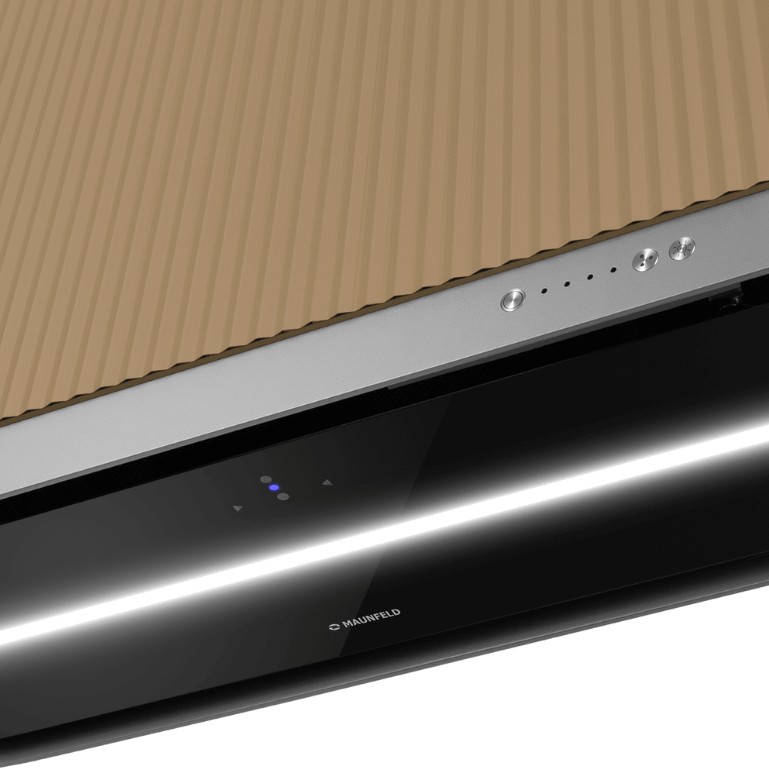 Крепление вытяжки к стене — стандартное для многих моделей, ими удобно управлять, так как кнопки находятся на расстоянии вытянутой руки. Обратите внимание на цветовые сочетания модели Maunfeld MURANO 80 Gold, чтобы органично вписать ее в свою квартиру. Оттенок корпуса: золотой.