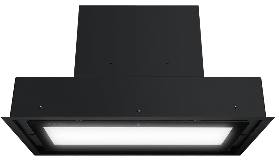 Вытяжки, встраиваемые в столешницу — эффективная инновация, которая подойдет для установки в кухне любой площади. Такие вытяжки размещаются за варочной поверхностью или рядом с ней. В отключенном состоянии всасывающая панель находится под столешницей, но после включения одной или нескольких конфорок она автоматически выдвигается при помощи специального лифтового механизма. Загрязненный воздух улавливается, не успевая распространиться по помещению. Когда вытяжка убрана, на виду остается только сенсорная панель управления. Недостатком подобных моделей является только сравнительно высокая цена.