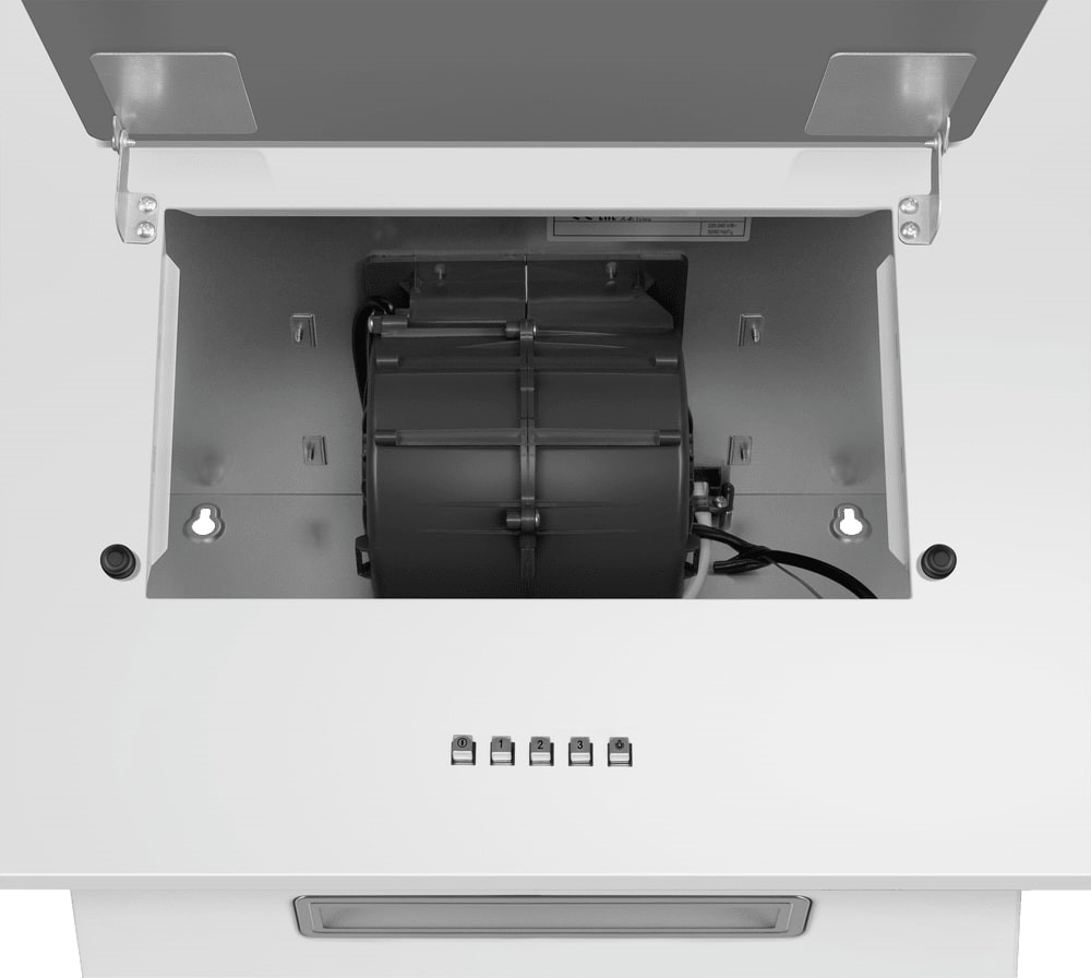 Данная вытяжка крепится на стену и имеет наклонную фронтальную панель, что придает изюминку дизайну и позволяет сохранить свободное рабочее пространство внизу. Обратите внимание на цветовые сочетания модели Maunfeld Wind 60 A White, чтобы органично вписать ее в свою квартиру. Оттенок корпуса: белый. Благодаря лампочкам, которые расположены на нем, можно освещать плиту и столешницу рядом, чтобы готовить было еще проще и приятнее.
