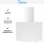 Вытяжка Midea MH60AN364GW выполнена в наклонном формате и сразу привлекает аккуратной белой панелью из закалённого стекла.