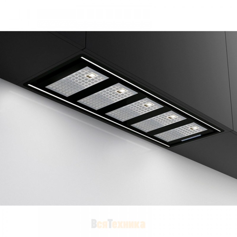 Вытяжка, встраиваемая в потолок, часто устанавливается над кухонным островом в просторной кухне и отличается достаточно высокой мощностью: она может работать как в режиме рециркуляции, так и в режиме отвода, так как воздуховод также скрыт в потолке. Вытяжки могут монтироваться в подвесной потолок либо устанавливаться в специальные многоярусные конструкции из гипсокартона непосредственно во время ремонта кухни. Для управления ими используется пульт ДУ.