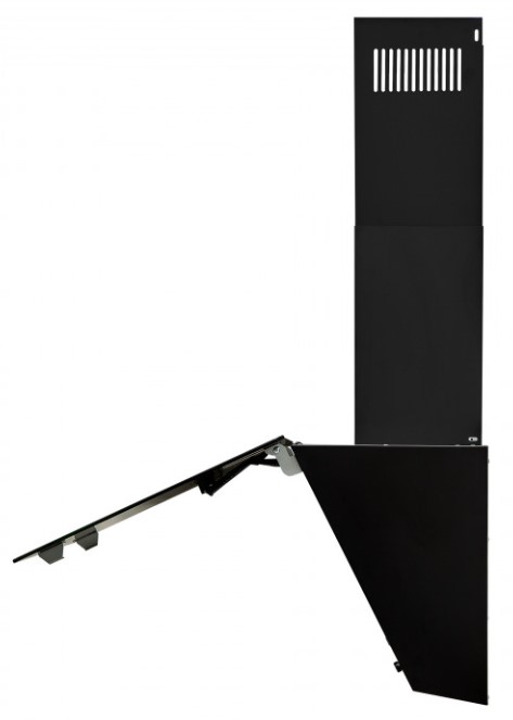 Вытяжки с наклонной фронтальной панелью позволяют освободить пространство над варочной панелью, при этом мощность забора воздуха не страдает от конфигурации модели. Такими вытяжками удобно управлять, так как кнопки обычно находятся спереди, доступ к ним максимально облегчен. Зачастую есть всасывание по периметру.