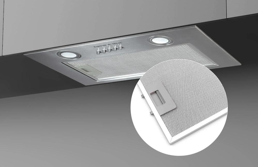 Все современные вытяжки оборудованы системой фильтров, обеспечивающей очистку воздуха и защиту двигателя от капель жира, водяных паров, частиц сажи и других загрязнений. Большинство вытяжек комплектуется сменным жироулавливающим фильтром, который представляет собой конструкцию из рамки со вставленными в нее слоями металлической сетки — как правило, алюминиевой или стальной. Обычно устанавливают 1 или 2 штуки, реже 3 или 4.