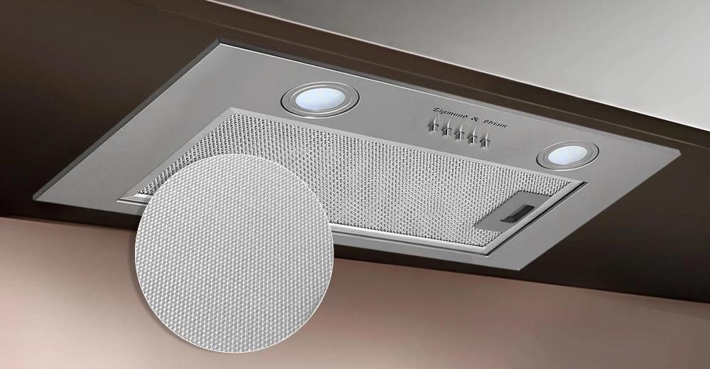 Все современные вытяжки оборудованы системой фильтров, обеспечивающей очистку воздуха и защиту двигателя от капель жира, водяных паров, частиц сажи и других загрязнений. Большинство вытяжек комплектуется сменным жироулавливающим фильтром, который представляет собой конструкцию из рамки со вставленными в нее слоями металлической сетки — как правило, алюминиевой или стальной. Обычно устанавливают 1 или 2 штуки, реже 3 или 4.