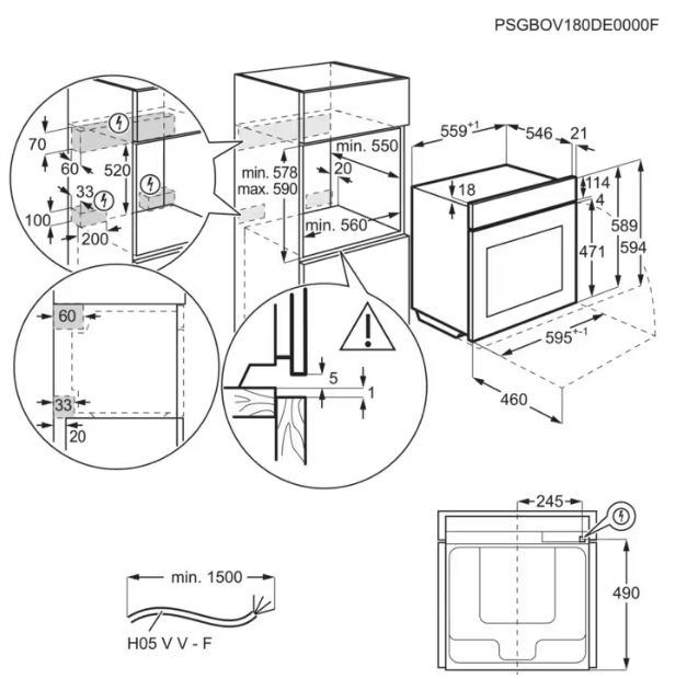 AEG NBP8S731AT - схема с размерами к духовому шкафу на разных языках на Hausdorf