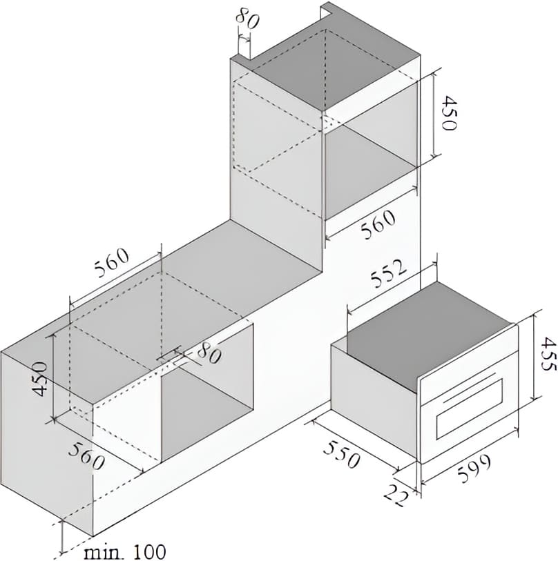 Ilve 645SZTCT4/BK - схема встраивания к духовому шкафу на разных языках на Hausdorf