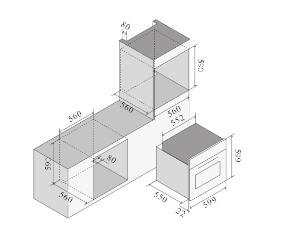 Ilve OV60-SNT3/AWG - схема встраивания к духовому шкафу на разных языках на Hausdorf