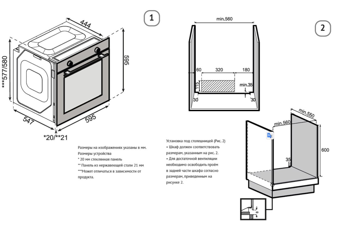Korting OKB 51041 CEGN - схема с размерами версия 2 к духовому шкафу на разных языках на Hausdorf