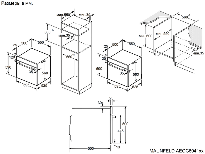 Maunfeld AEOC6041B2 - схема с размерами версия 2 к духовому шкафу на разных языках на Hausdorf