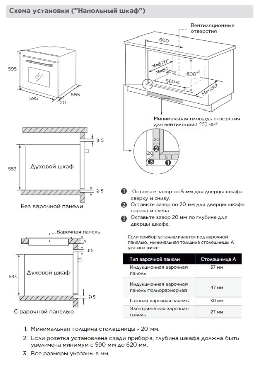 Midea MO69103GW - схема с размерами к духовому шкафу на разных языках на Hausdorf