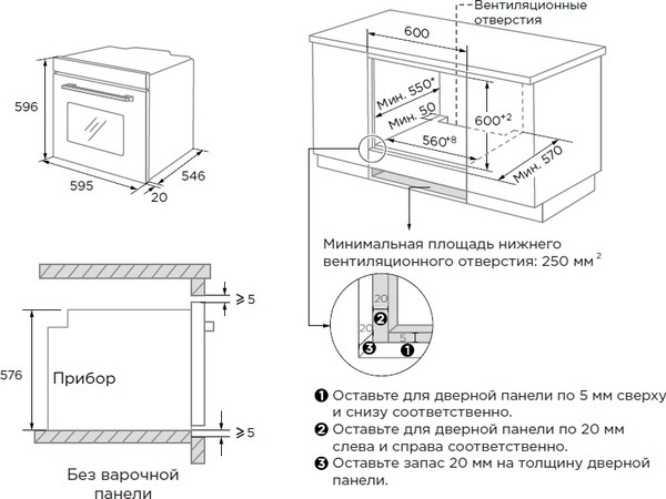 Midea MO817100MGB - схема с размерами версия 2 к духовому шкафу на разных языках на Hausdorf