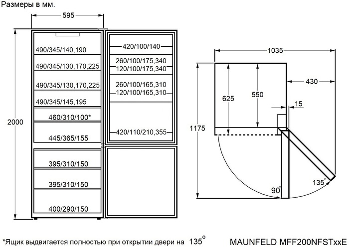 Maunfeld MFF200NFSTWE - схема с размерами версия 2 к холодильнику на разных языках на Hausdorf
