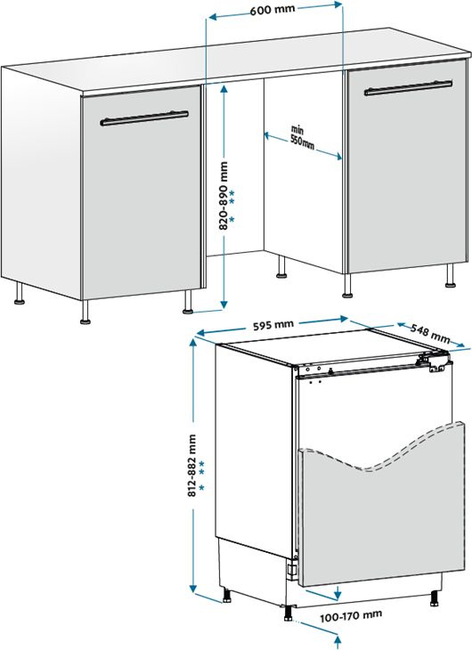 Hyundai HBR 0812 - схема встраивания к холодильнику на разных языках на Hausdorf