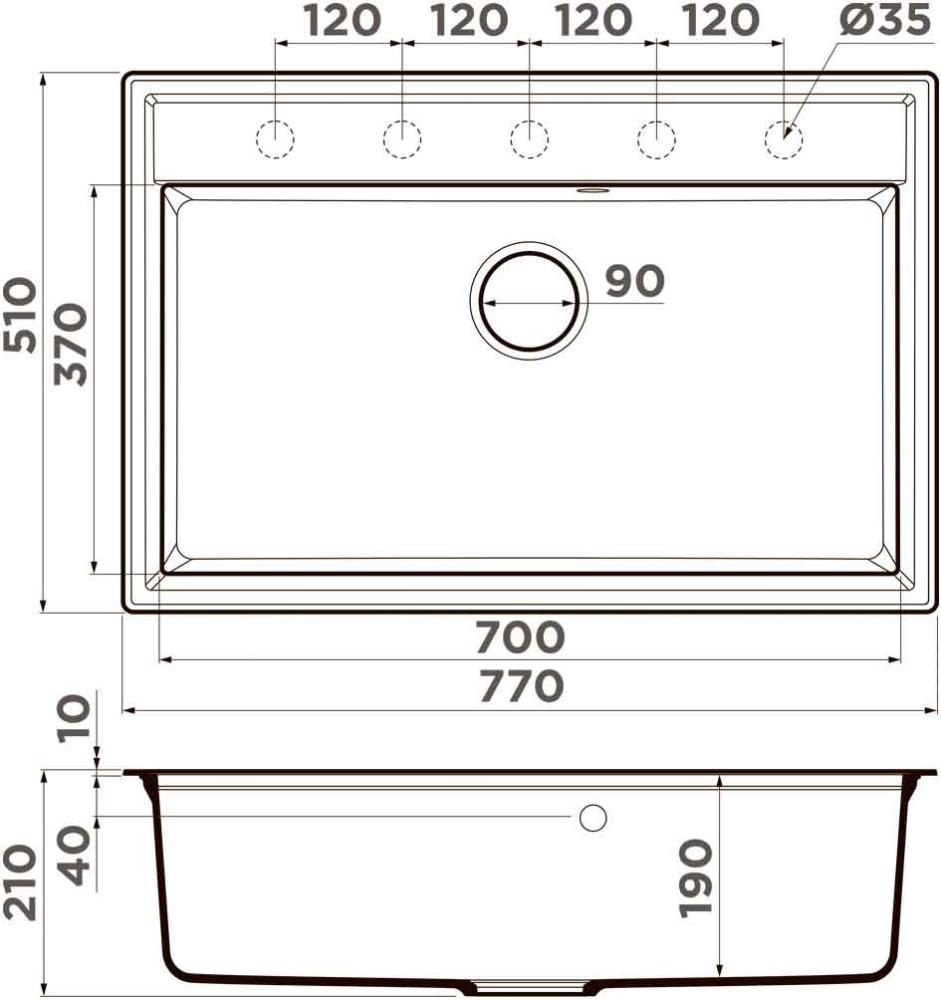 Omoikiri Daisen-77-WH - схема с размерами версия 2 к мойке на разных языках на Hausdorf
