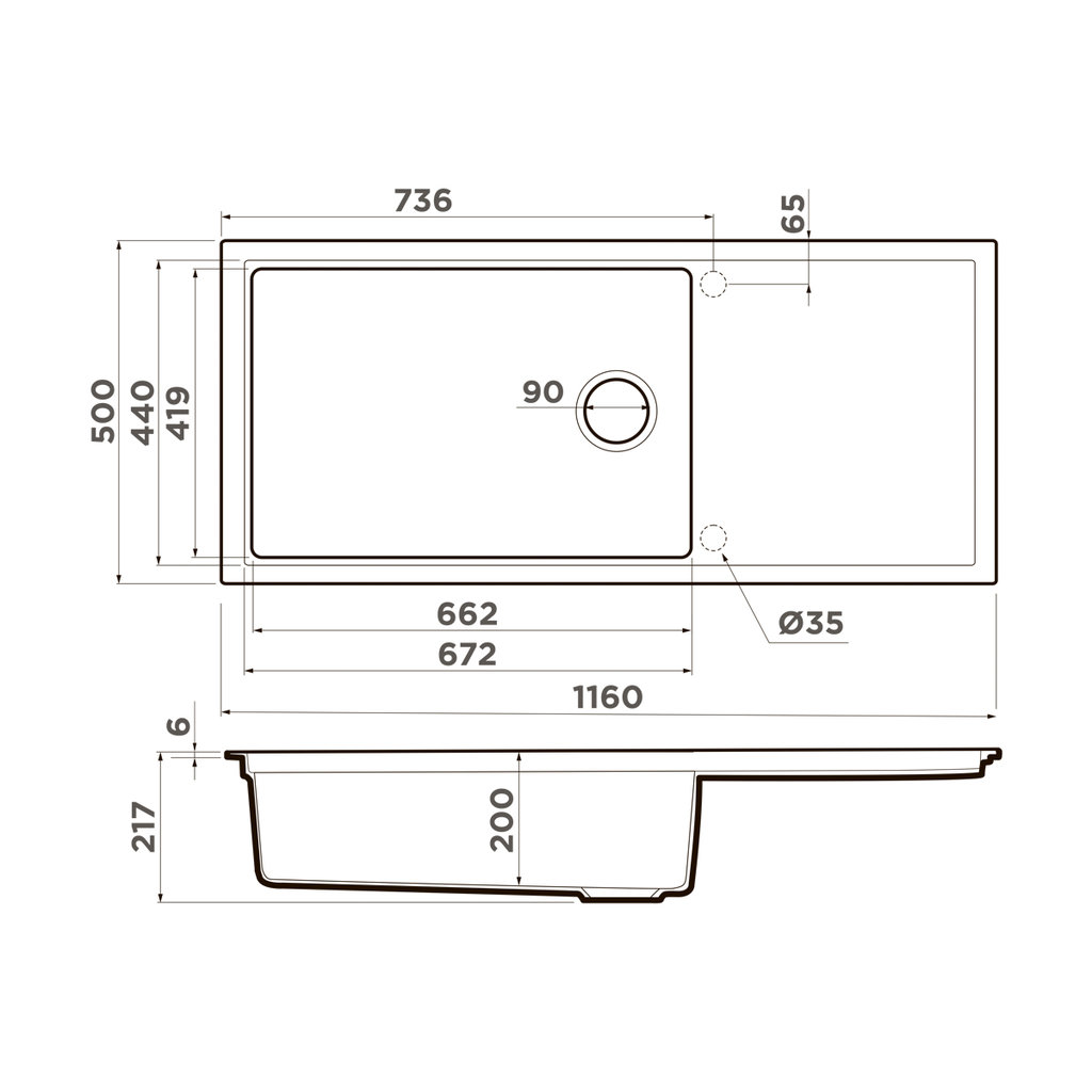 Сохранить файл: Схема с размерами к Omoikiri SINTESI 116 WH.JPG, 103.3 Кб