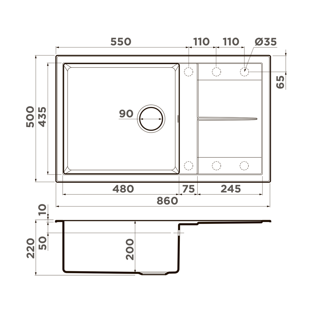 Сохранить файл: Схема с размерами к Omoikiri Sumi 86-WH.PNG, 129.6 Кб