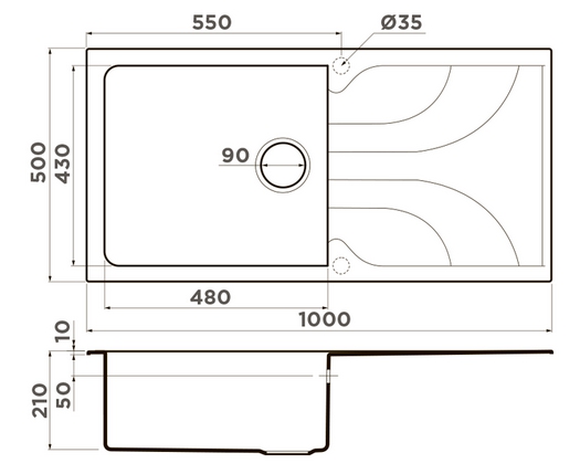 Сохранить файл: Схема с размерами к Omoikiri YASUGATA 100 CH.JPG, 60.75 Кб
