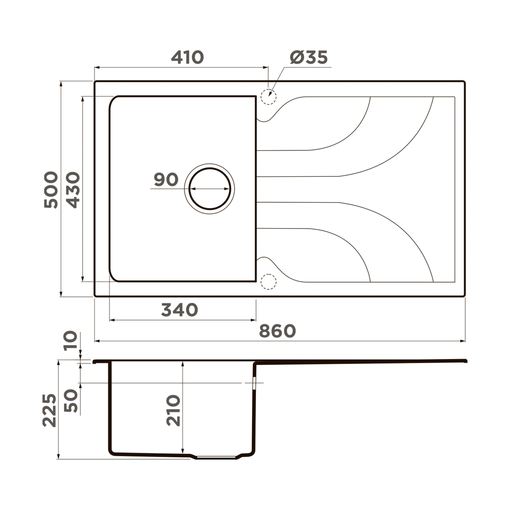 Сохранить файл: Схема с размерами к Omoikiri YASUGATA 86-SA.PNG, 117.38 Кб