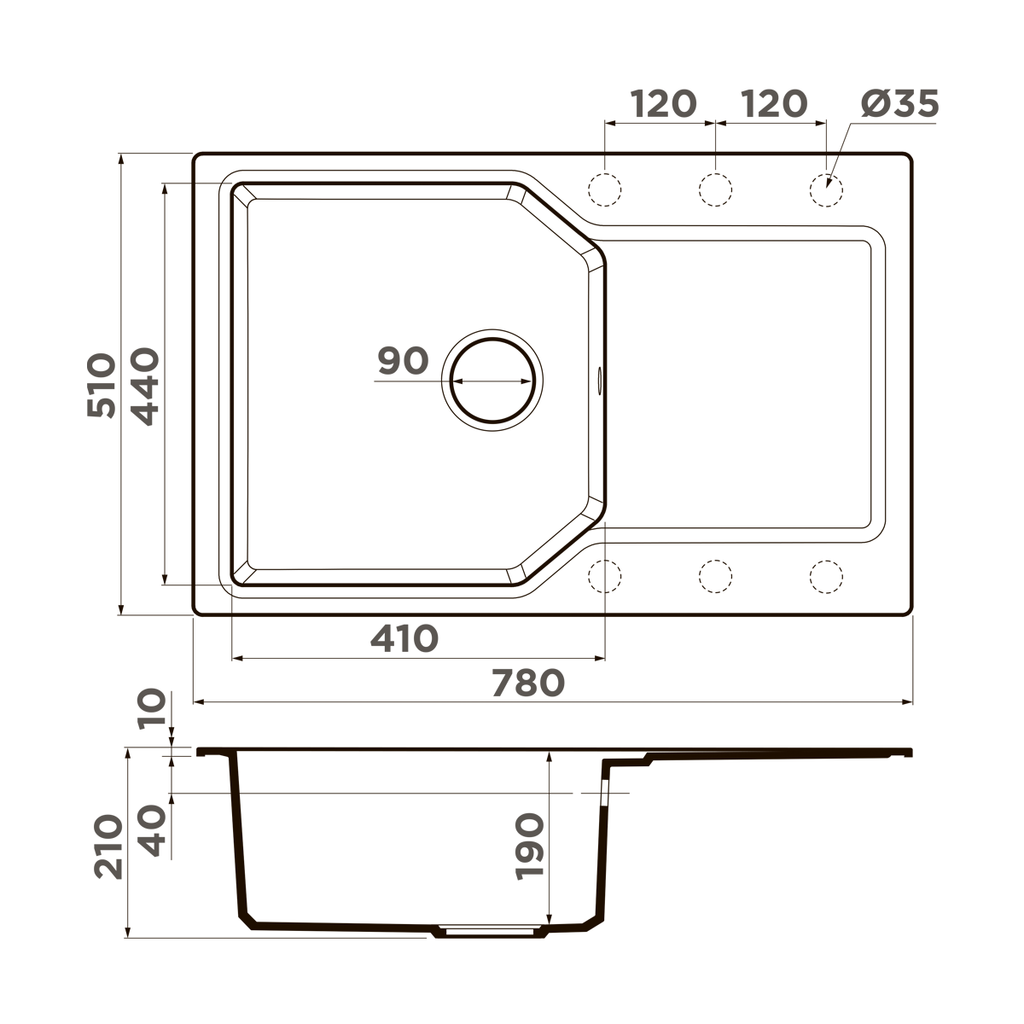 Сохранить файл: Схема с размерами к Omoikiri Yonaka-78-PA.PNG, 138.2 Кб