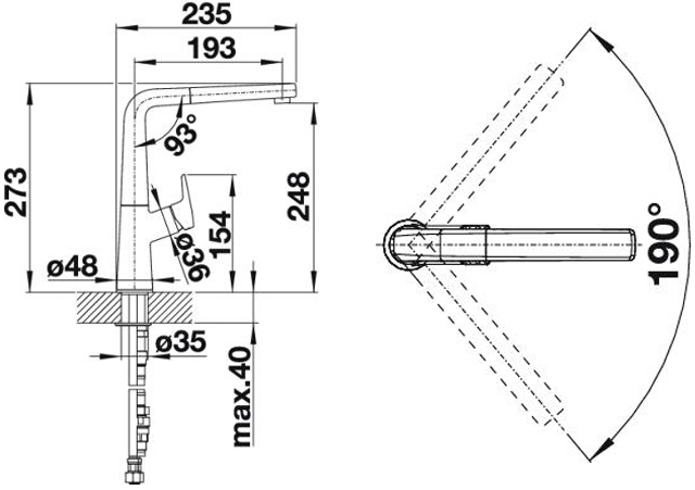 Blanco Avona-S Silgranit Белый [Гранит] Гранит 521280 - схема с размерами к смесителю на разных языках на Hausdorf