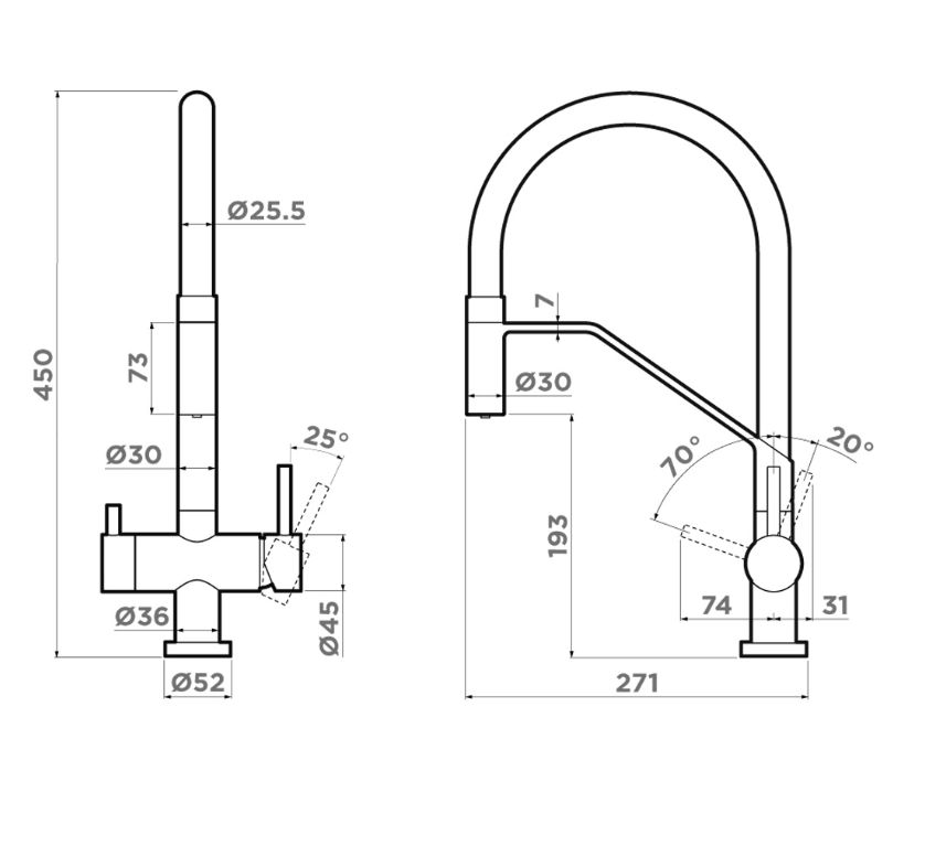 Omoikiri Akeno gb - схема с размерами к смесителю на разных языках на Hausdorf