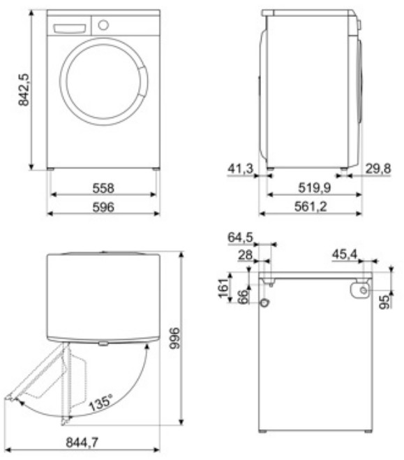 Smeg LB1T70IT - схема с размерами к стиральной машине на разных языках на Hausdorf